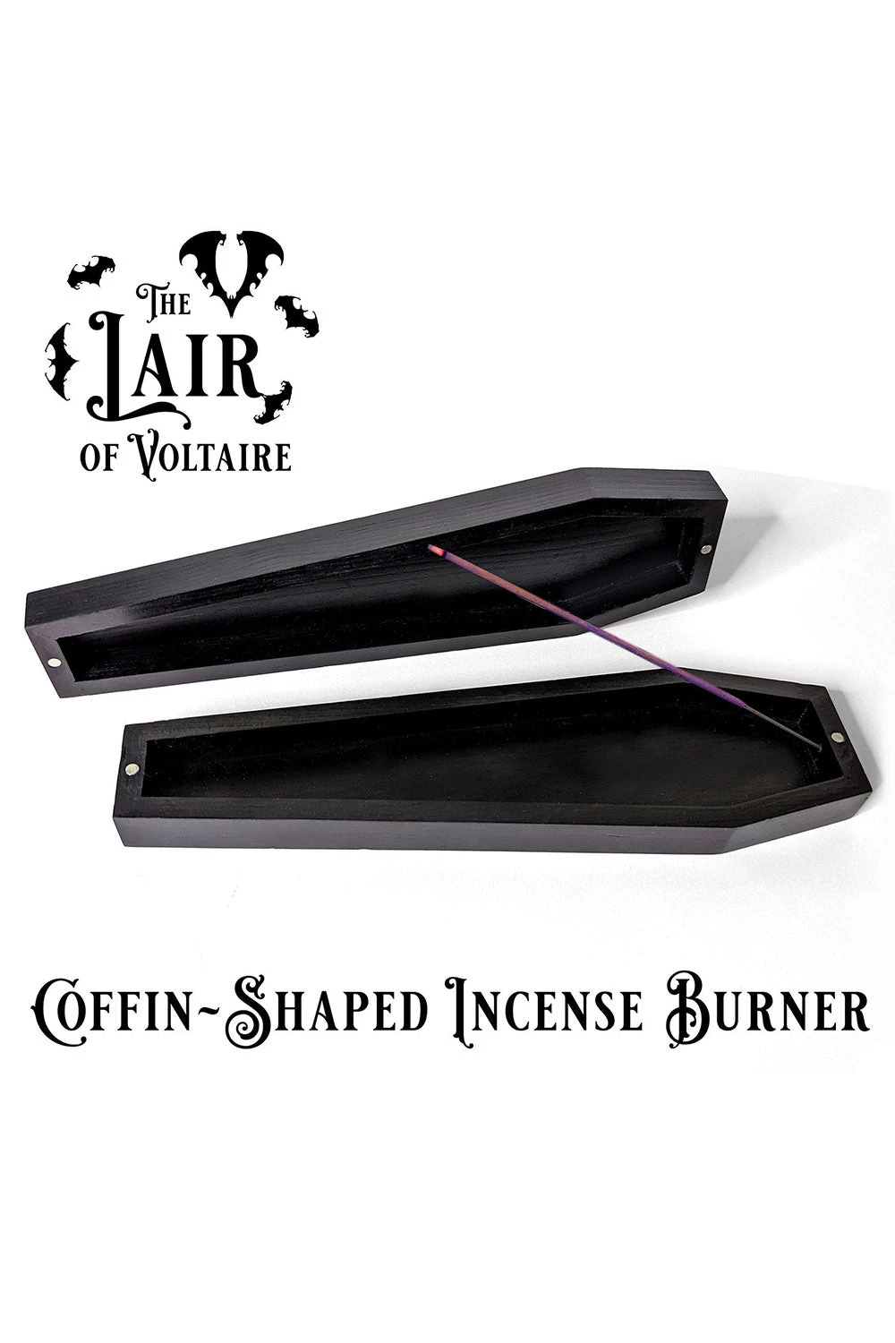 *Thus set includes 2 incense burners! Use both to burn incense in two separate corners of your lair or… use one to burn incense and the other to hold the incense sticks! And better still, the two pieces have a magnetic closure so you can store your incense and take it with you to a relaxing graveyard picnic or some other serene spooky affair.