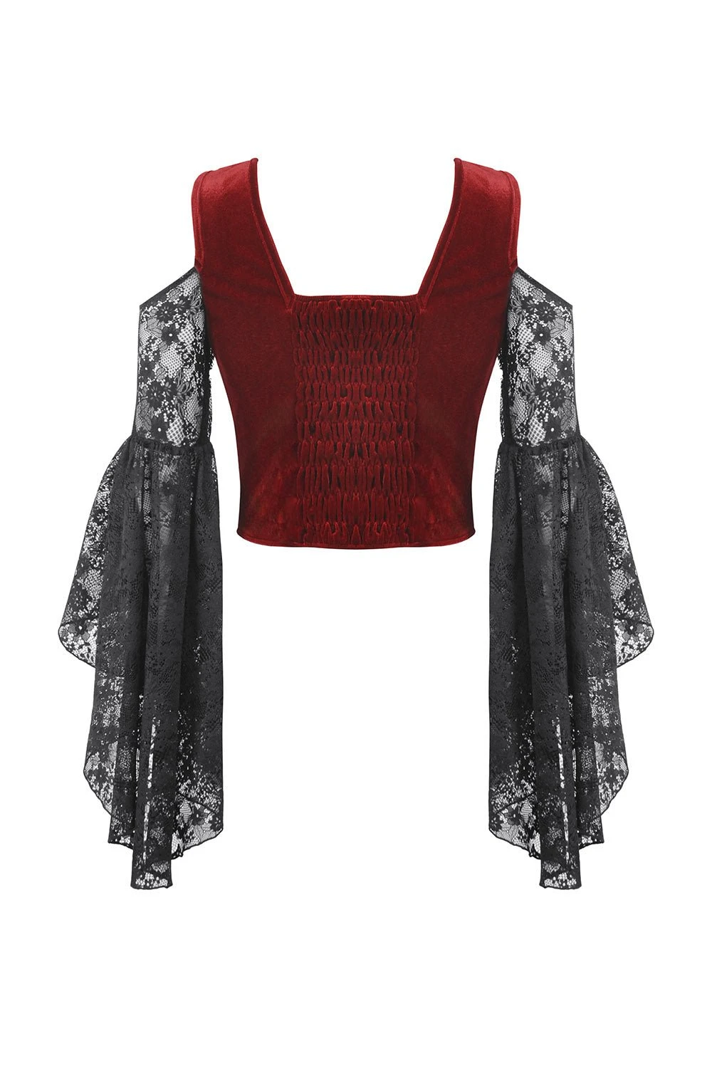 - Flared Lace Sleeves.