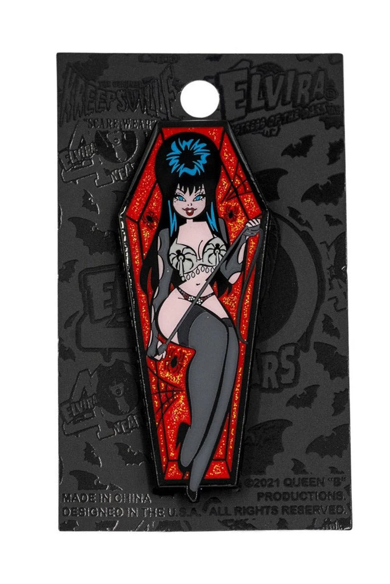 Elvira Spider Coffin Glitter Enamel Pin