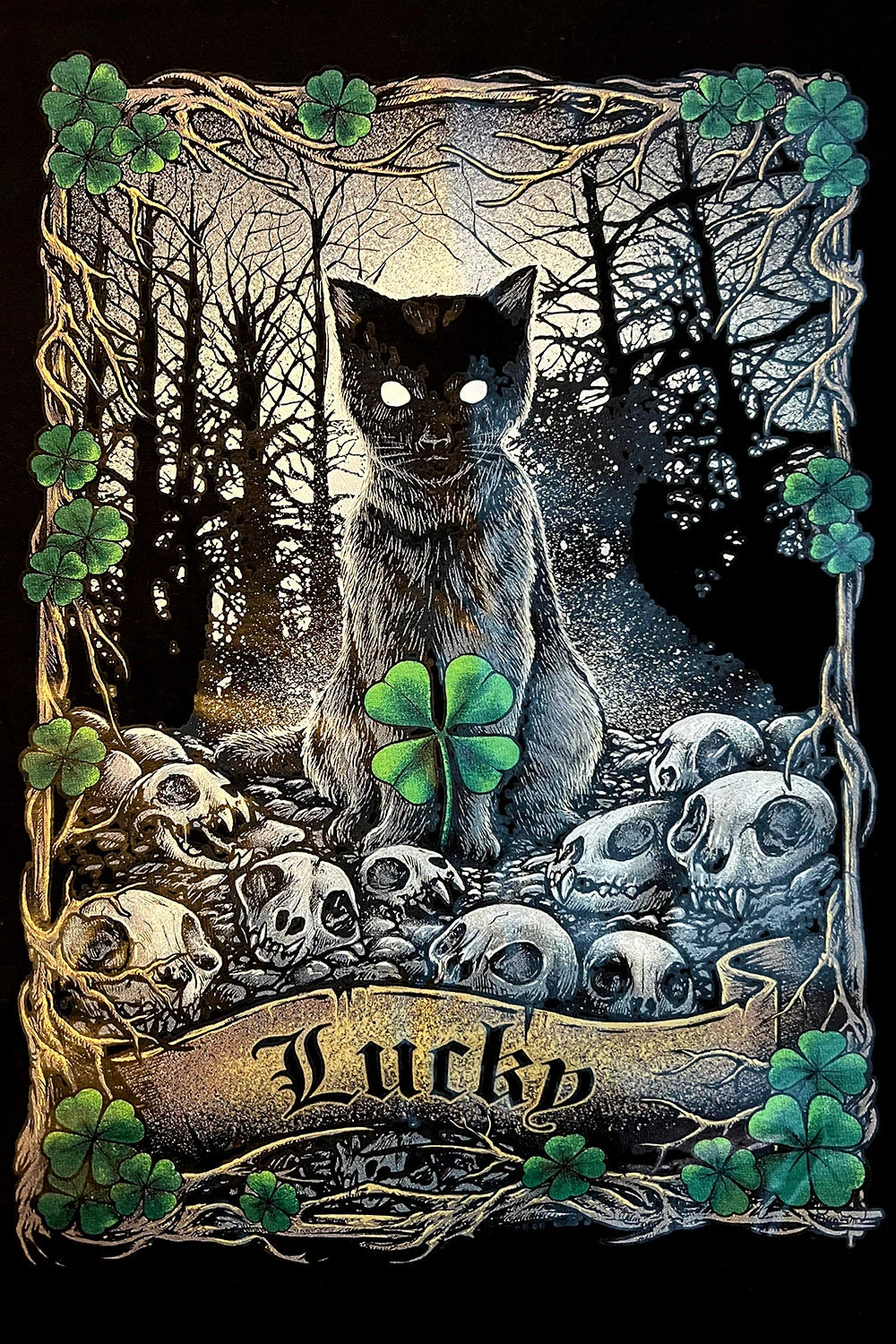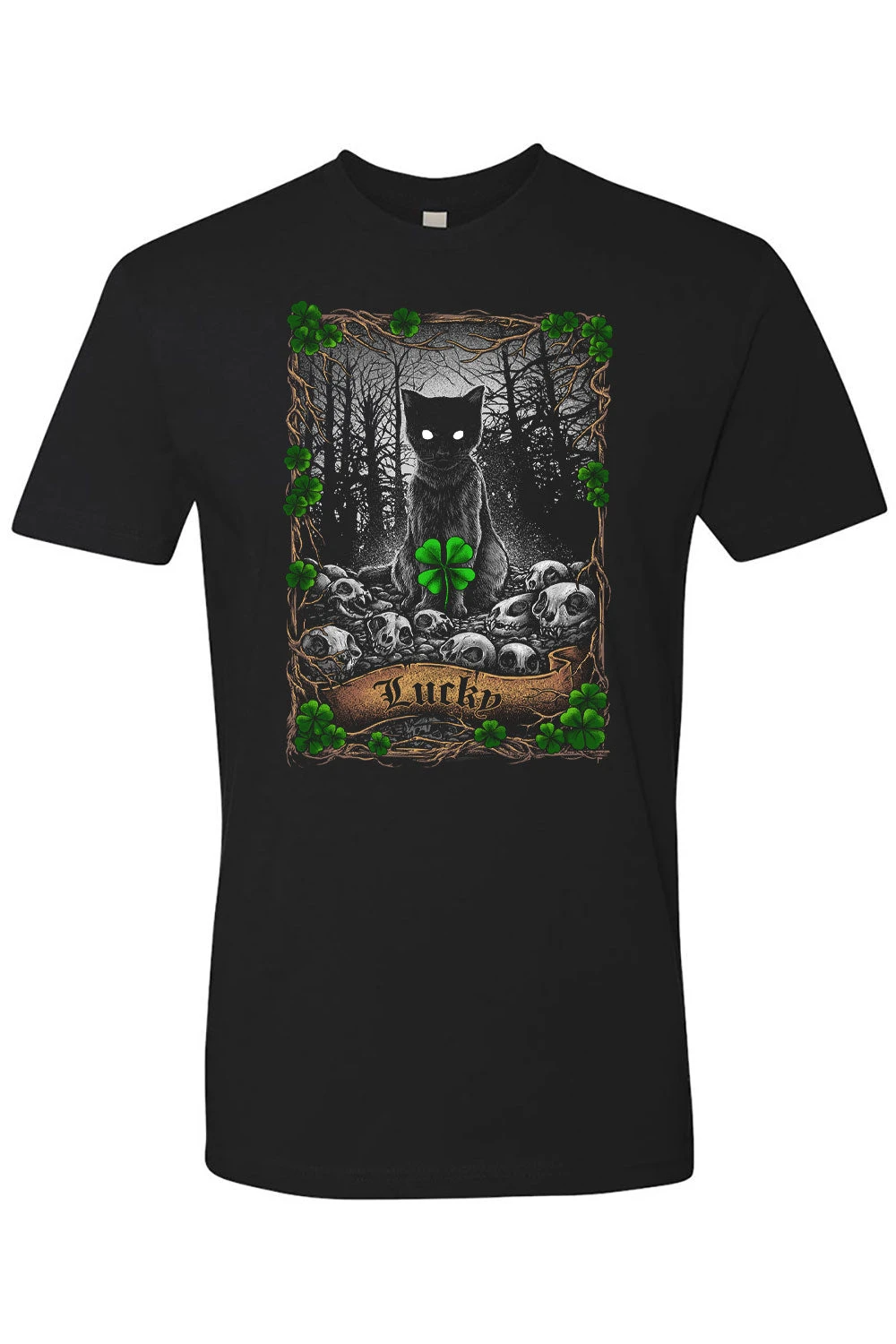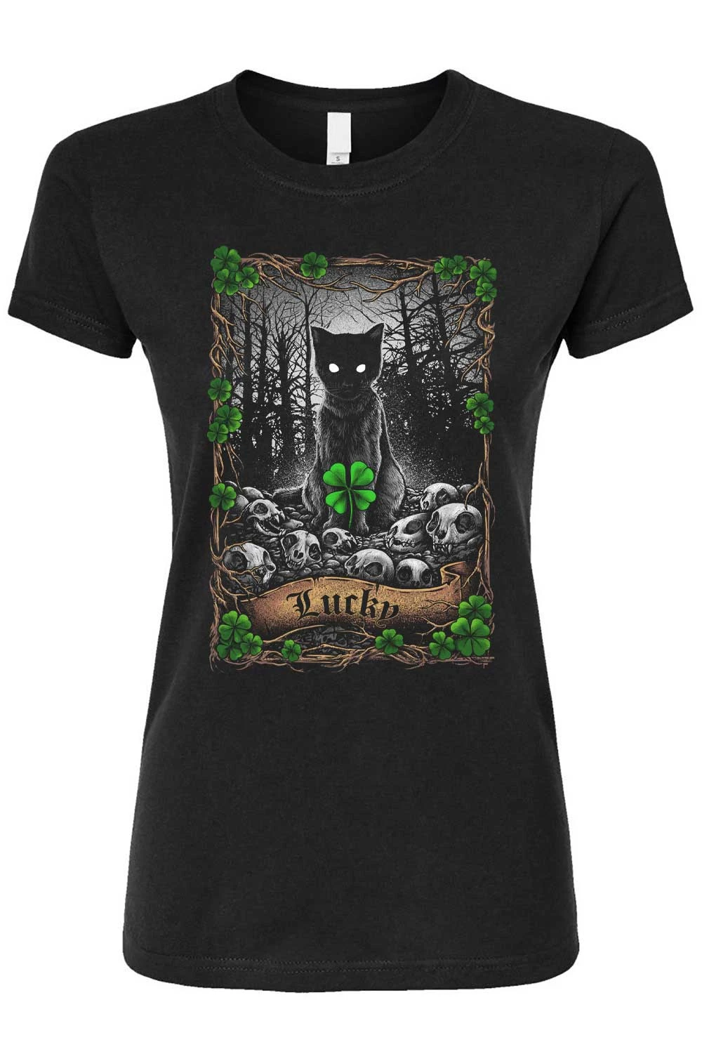 Legends say that a black cat crossing your path means bad luck. During the Salem Witch Trials, black cats were killed alongside witches for being omens of misfortune. Join us in rejecting this old myth and honoring black kitties everywhere with our Lucky Cat Tee!