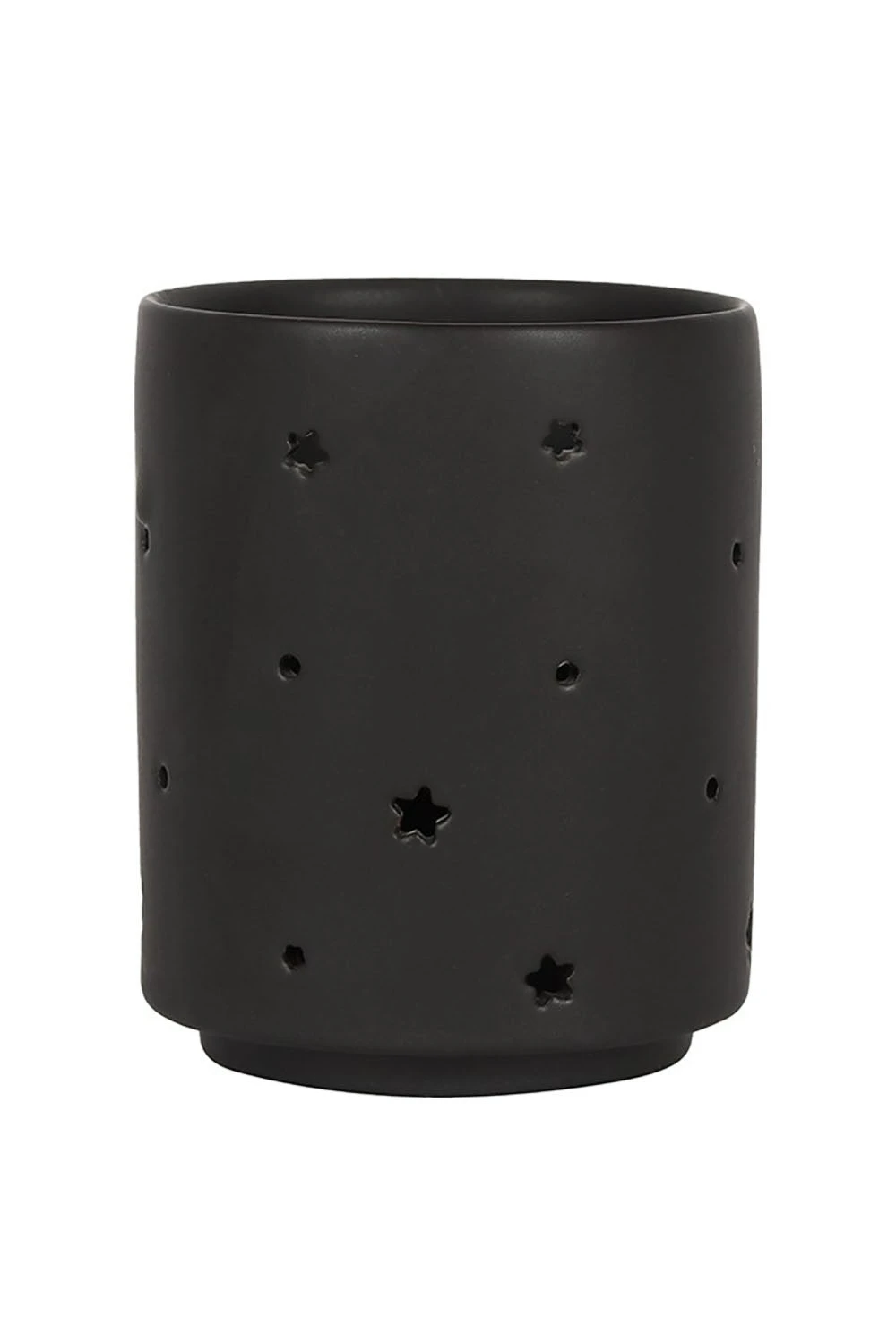 Commune with the moon with this crescent moon candle holder! Constructed of high-quality ceramic, this witchy candle holder features star and lunar cutouts. Summon some black magic to your rituals by burning a tea light candle inside the matte black pot. Perfect for casting some magic smells!