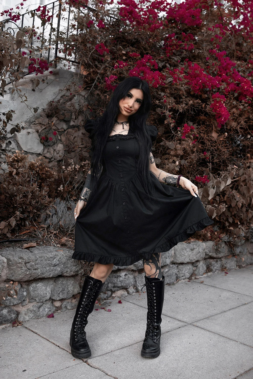 - Black Lace Details.